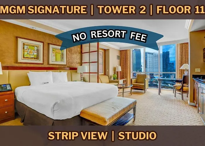 The 51 m² 11Th Floor Mgm Signature Studio:Strip View, No Fee Las Vegas is also located just a 5-minute walk from Planet Hollywood Resort & Casino|the Planet Hollywood Resort & Casino. The apartment comes with a private swimming pool and a terrace overlooking the city.